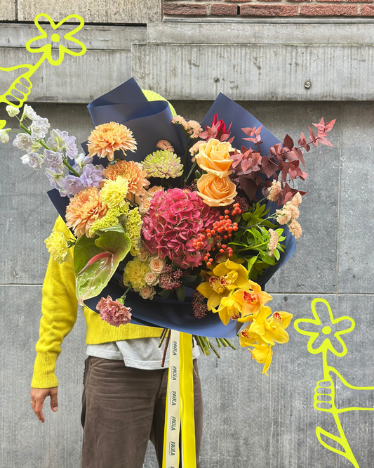 Paula Bloemenstudio is born from a desire to bring creativity, fun and love for flowers into one place. We tell stories through petals, colors and textures. We also pick our blooms weekly to ensure high quality and lowest possible environmental impact. We believe flowers have a unique power to channel emotions and we won´t let that pass without providing you with a unique bouquet that wraps up your feelings.